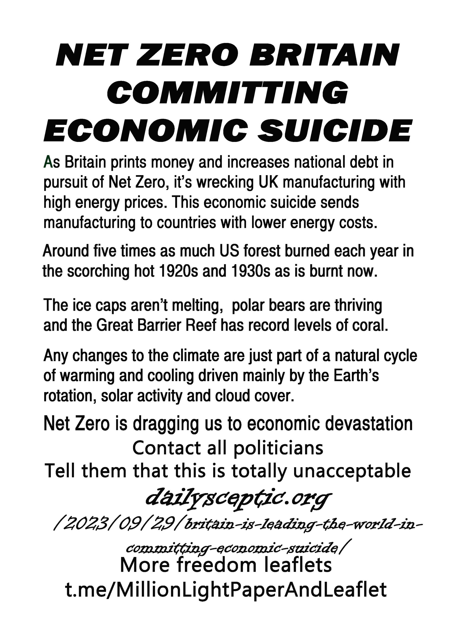 Latest leaflet Net Zero Britain Committing Economic Suicide