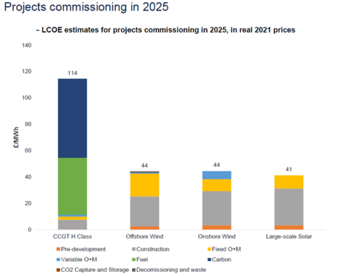 Another major factor is the sky high gas prices of the last 18 months, which were caused by politics (fracking ban and policies relating to Ukraine). Without that and the cost of carbon element, gas would be much cheaper than the others even when levelised.