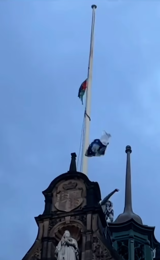 In Sheffield Protesters scaled Sheffield Town Hall and ripped down the Israeli flag, replacing it with the Palestinian flag to applause from crowds below.