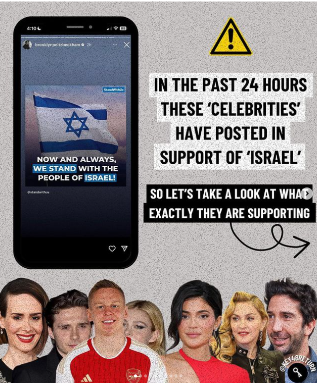The organisation also attempted to sow division along racial lines by posting a graphic displaying images of celebrities who have spoken out in support for Israel in recent days.