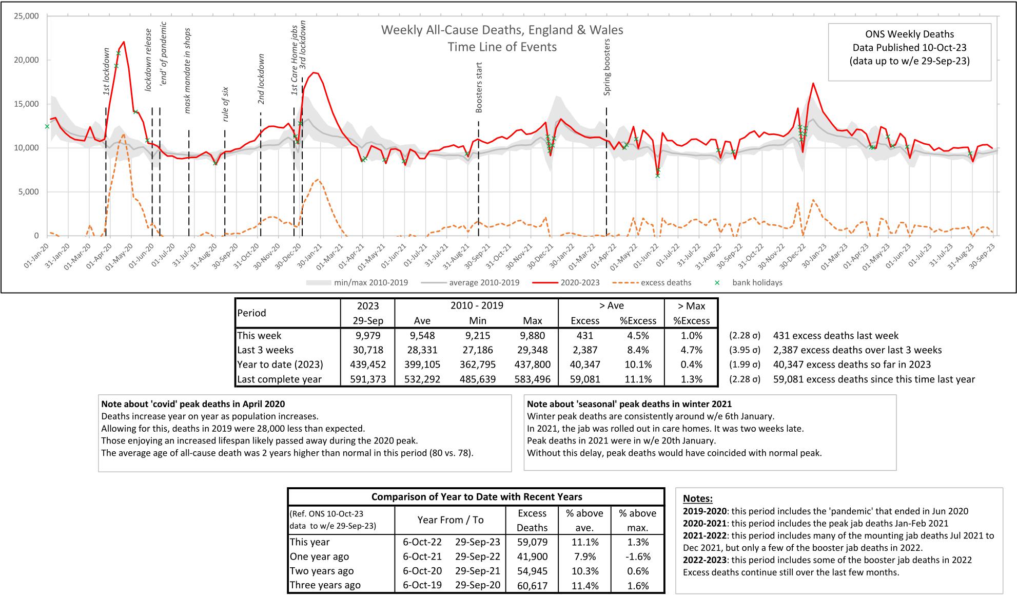 Just for the record, in England and Wales over the last full year, excess deaths are now about the same as three years ago. That year encompassed the so-called ‘pandemic’.