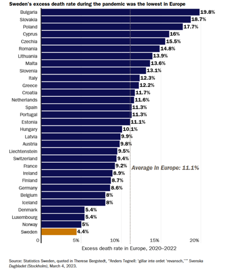 I think most of us understand that Sweden appears to have ‘won’, with it’s decision to ignore worldwide hysteria and not have a ‘lockdown ‘. At that time, there was a negligible difference in their excess deaths, and far less disruption to their society.