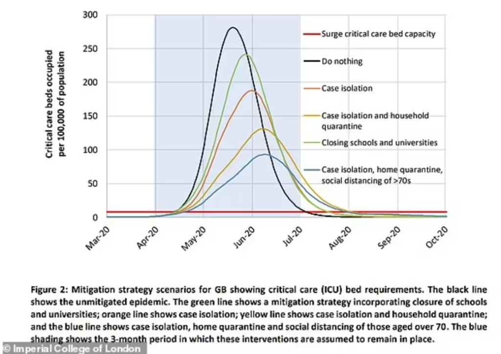 Their work suggested 500,000 Brits would die if nothing was done to stop the spread of the virus and there would be 250,000 deaths if two-thirds caught Covid.