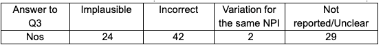 The category ‘incorrect’ includes inferences that do not follow from the inputs into the model (i.e., the answers to the first two questions were unsatisfactory) or claims that intervention X interrupted transmission without corroborating evidence. Here is an example of such a statement: “NPI interventions are always going to have a positive influence on mitigating the spread, independently of the testing frequency.”