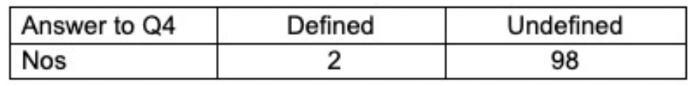 The total entries in each row are not 100 as some studies were inappropriate, one was a duplicate study and one was not identifiable from the reference. Also, studies which did okay in answering one question may not have done well in answering any or all of the other three, so each row should be read separately except for answers to question four, which sums up the quality of the studies. Below each row, we have posted a brief example of the text content, which gives you some idea of what we had to contend with.