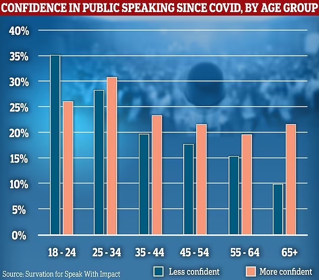 In other age groups from 25 to 64, a slim majority of people said they had gained confidence in speaking in front of an audience over Covid; the biggest rise in confidence was among the over-65s.