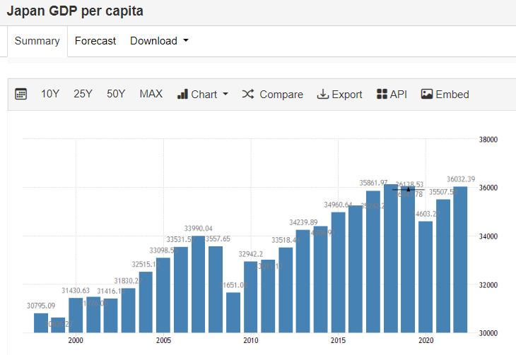 Japan has a declining population and declining wealth. Which doesn’t mean it is a bad place to be. But it is poorer than it was.
