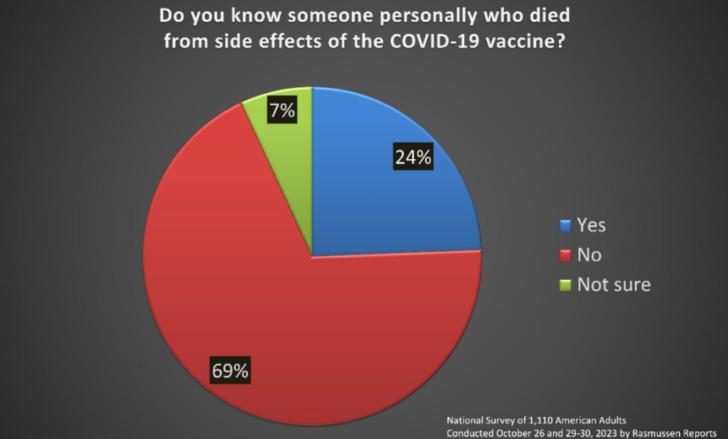 - 24% personally know someone who was killed by the Covid vaccine.