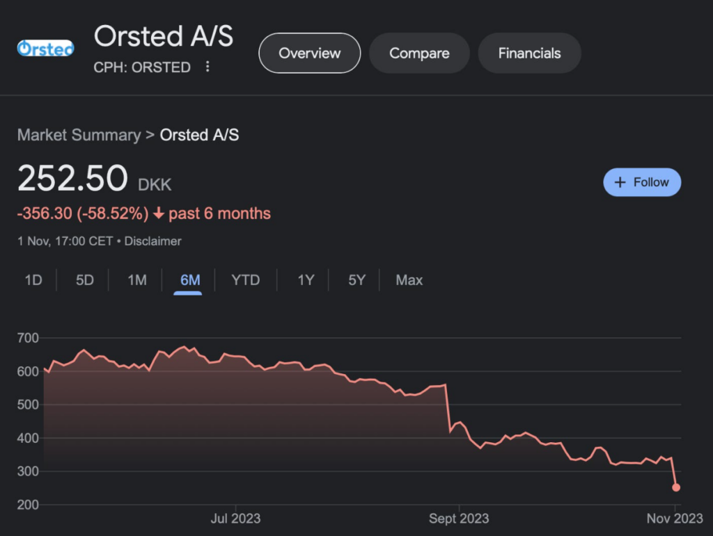 Ørsted’s stock has fallen 60% this year and the New York Times estimates it will have to write off $5.6 billion in investments in the two projects. “There’s really not a Plan B right now,” confessed Jeff Tittel, the former Director of the Sierra Club’s New Jersey chapter. “It’s a political disaster.”