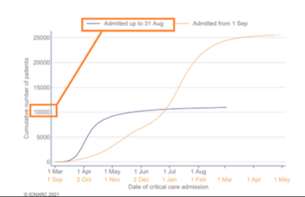 This well established response was jettisoned through intense lobbying from Dominic Cummings and various other pressure groups, many Left-leaning. In Cummings’s correspondence with Professor Gowers, the professor creates a ‘back-of-the-envelope’ illustration using assumptions plucked from thin air and not connected to the 100-plus years’ worth of pandemic statistics referred to in PPS. The illustration showed that 800,000 people may need intensive care treatment. In the event 10,000 people needed intensive care treatment over the first wave from March 1st 2020 to August 31st 2020. Professor Gower’s illustration was wrong by a factor of 80 times.