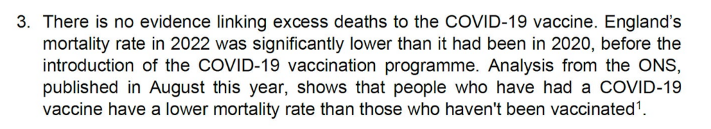 Answering questions about excess deaths cannot be done in days as the DHSC did – using inaccurate statistics further undermines confidence in patient safety. The only way to assess excess deaths is to undertake a thorough investigation, as we first pointed out in August 2022 and on several other occasions.