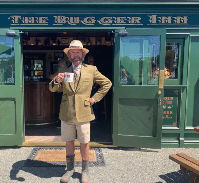 What exactly has Noel been up to? Basically, he has been using his millions to have fun, which in these Puritan days can no longer be allowed. In the first part of its exposé, Stuff revealed how Noel has sought to transform his main NZ estate into a slice of fake ‘Olde England’ crossed with a Carry On film, establishing his own pub called The Bugger Inn, at which you can buy drinks laced with double-entendres: one beverage is called Dickens Cider, billed as “the ladies’ favourite”.