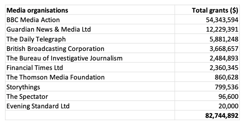 Please see my comment. BBC Media Action is nothing to do with the Trusted News Initiative. It is an international development charity that has been receiving grants from BMGF since 2006 almost all for health and development project in developing countries.
