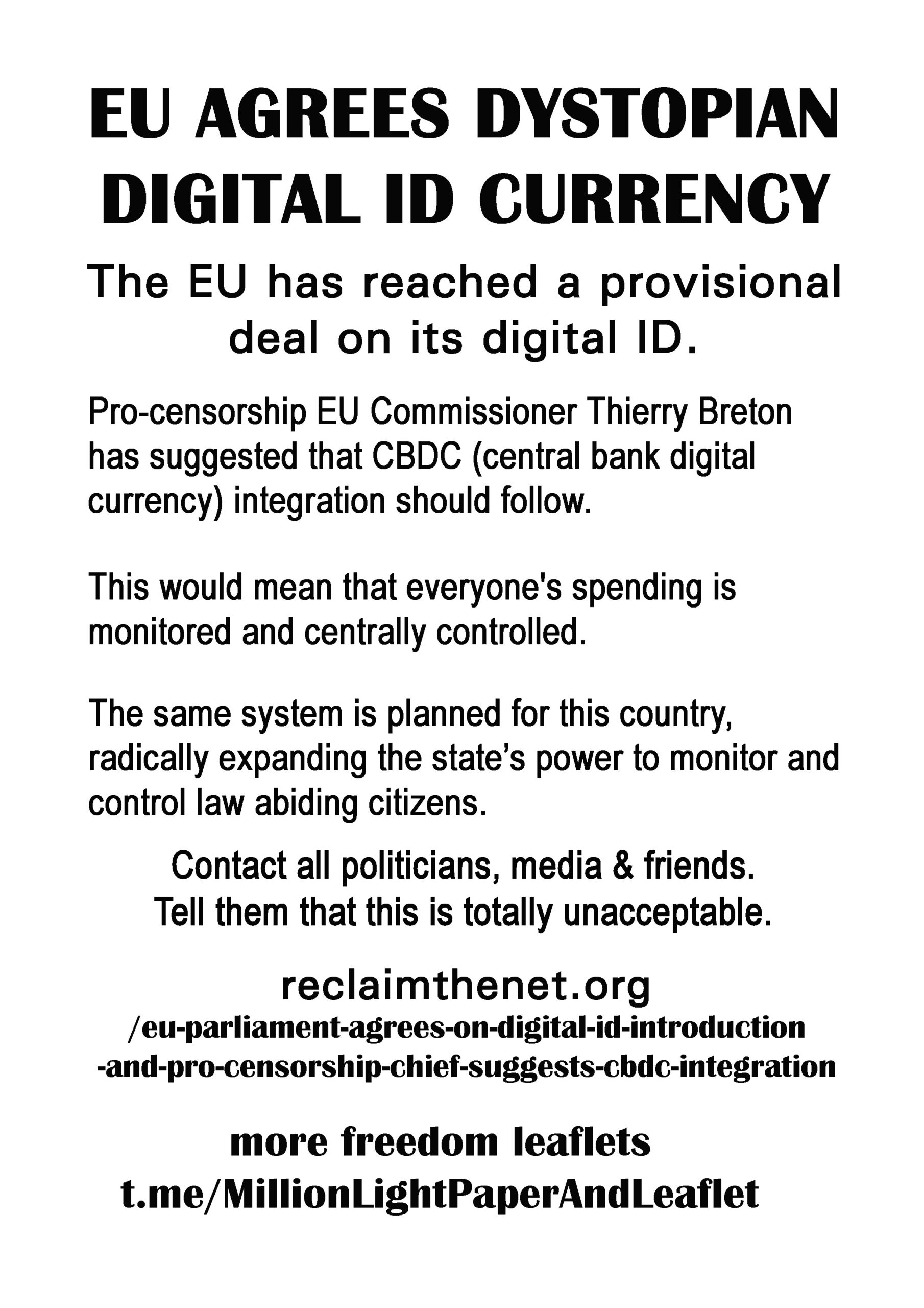 latest leaflet to print at home and deliver to neighbours or forward to politicians, media, friends online.