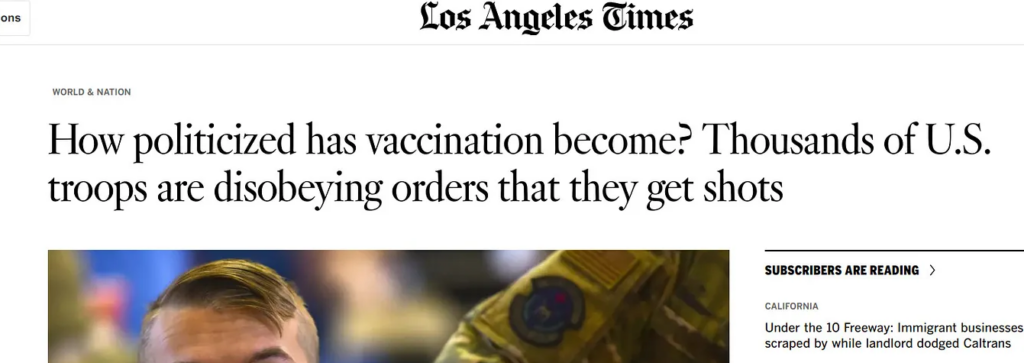 Just two years ago, in a shameful campaign, the Pentagon was gleefully discharging soldiers who refused to take Covid vaccines.