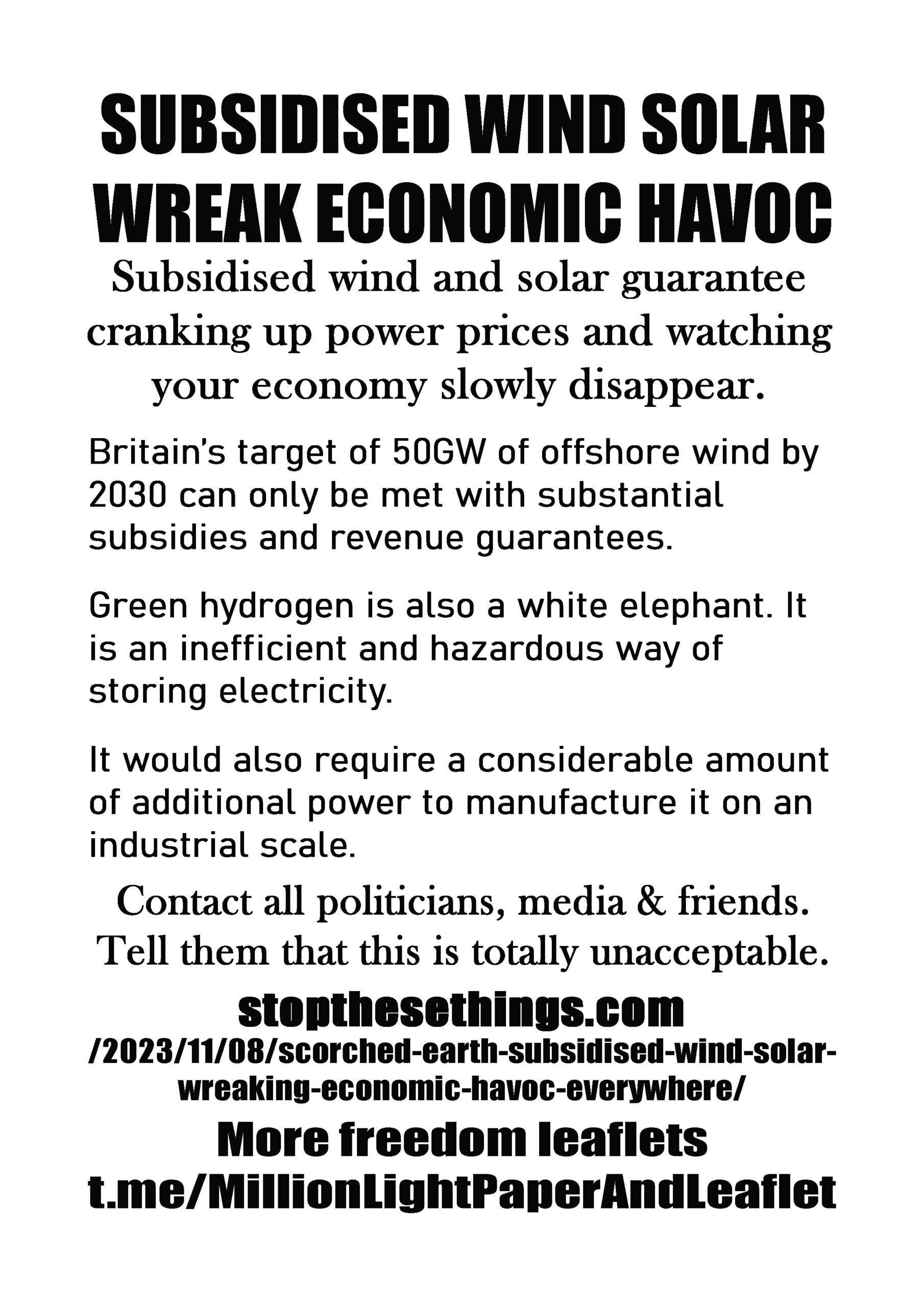 Subsidised Wind Solar Wreak Economic Havoc