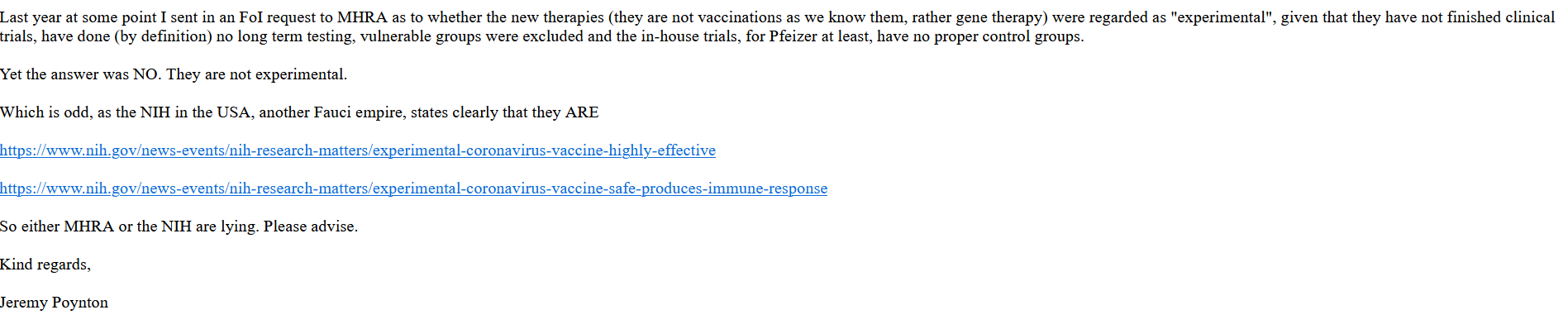 It’s possibly time to put inverted commas around the word “vaccine” or the word (sic). We don’t after all accept that these are “vaccines”. They are mRNA gene therapies that have no place in preventing respiratory disease, as far as any genuine medical scientist can tell.