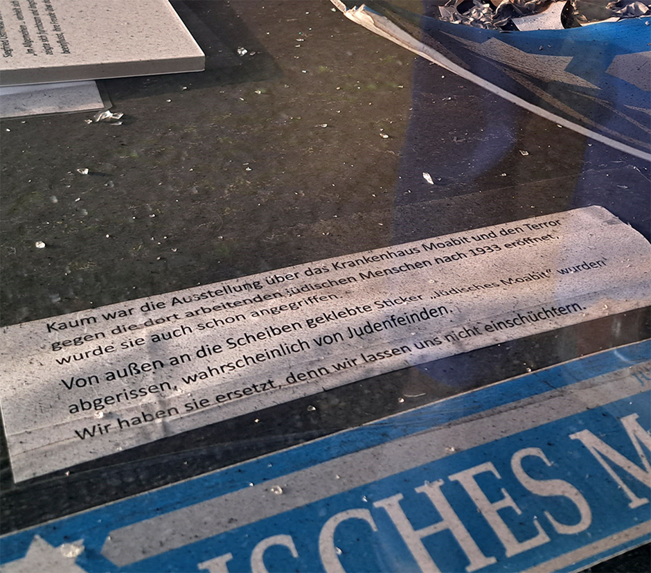 The exhibit on Moabit Hospital and the terror against the Jewish people working there had barely opened and it was already attacked.