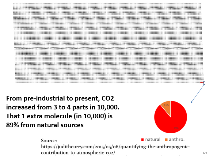 Gaia emits vastly more CO2 than humans, but it also absorbs huge amounts. The question is whether or not it can absorb human emissions. It was indeed warmer 2,000 years ago, as well as 1,000 years ago and various other times in the last 10,000 years. However this doesn’t mean that average global temperatures would the same as they currently are if we hadn’t started burning fossil fuels. There’s some AGW sceptic scientists that slightly disagree with prof Happer and think that emitting CO2 at current rates will cause another 0.2-0.3 degrees of warming, although this would be a good thing if we’re about to see a Solar Grand Minimum and widespread cooling.