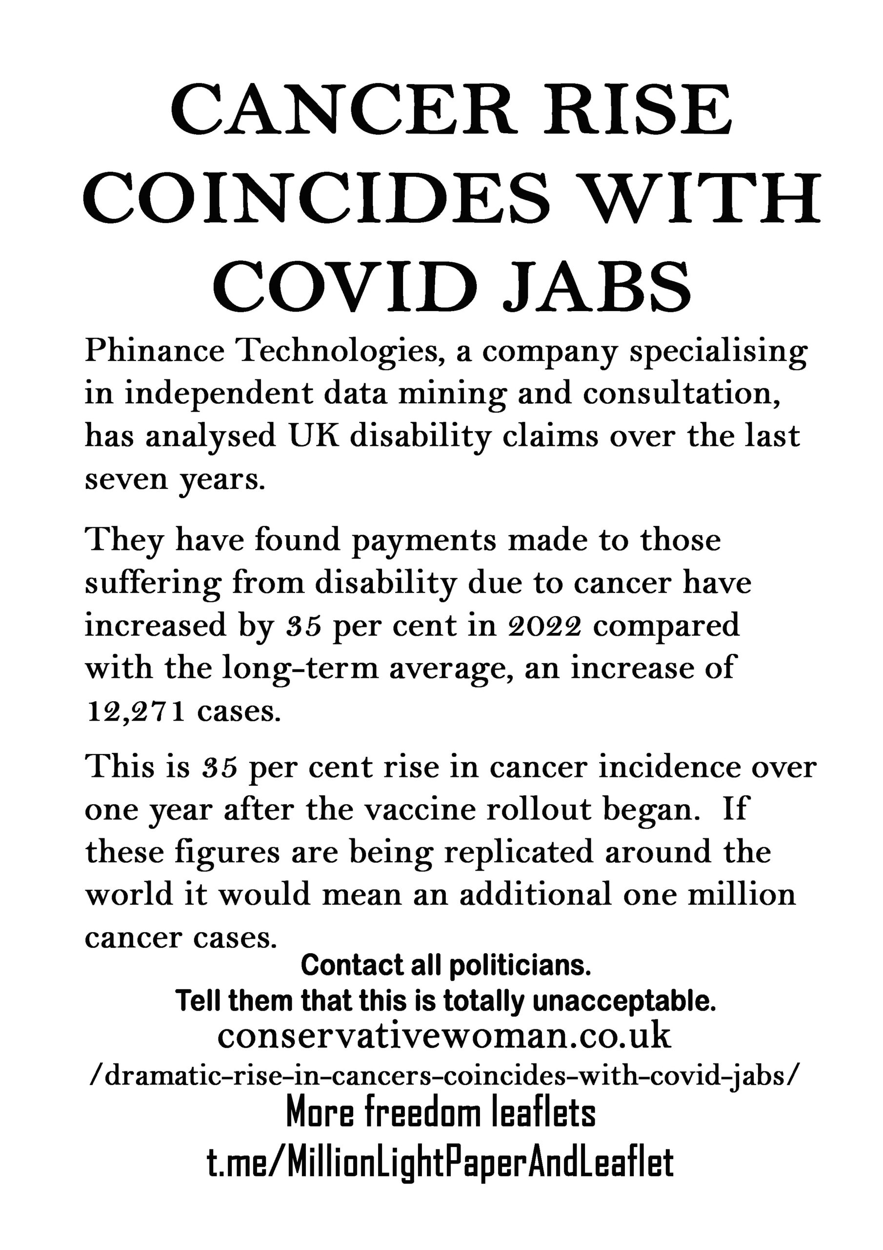 However, what is available is about a 7% increase in cancer deaths reported in Australia, a highly vaccinated country. Since cancers typically take years to develop and grow, such an increase is concerning, given that only two years passed since Australians received their ‘safe and effective’ vaccines.