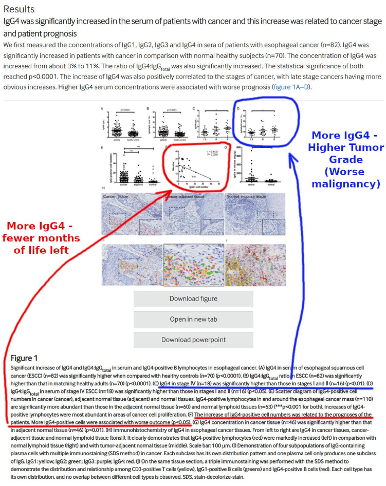 The rest of the scientific study tries to answer this question, and scientists conclude that IgG4 drives malignancy and aggressiveness of the real-life cancers they observed.