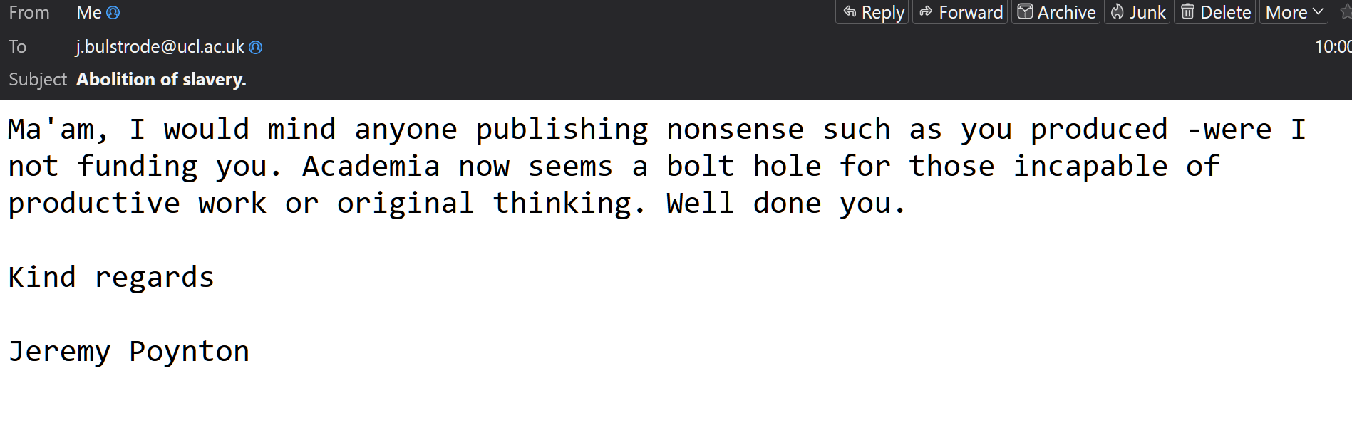 Blinded by hate, or brainwashed? Either way, what a cretin and UCL is tarnished by association.