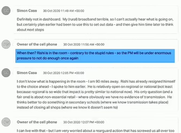 In a WhatsApp exchange between then Health Secretary Matt Hancock and Cabinet Secretary Simon Case from Autumn 2020, Mr. Case said Mr. Sunak favoured imposing curbs on schools rather than non-essential shops.