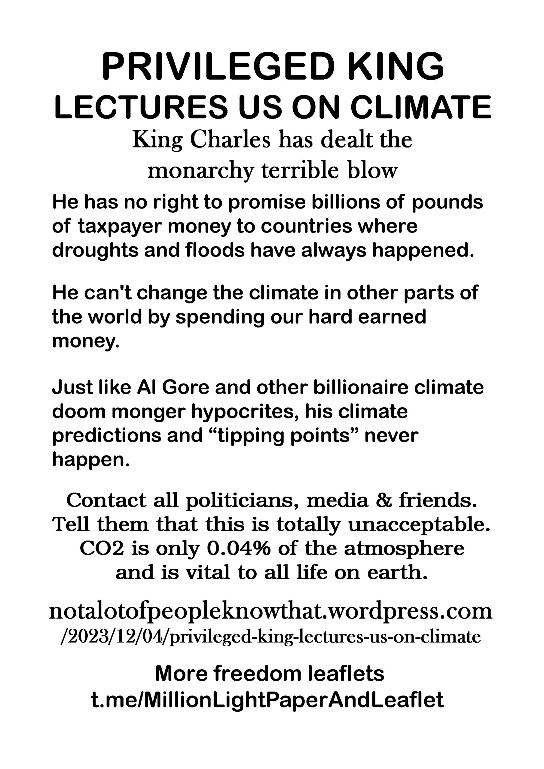 Privileged King Lectures Us On Climate