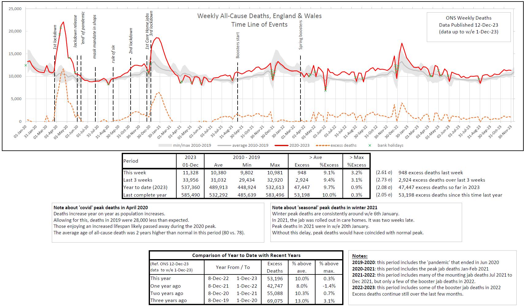 I have attached the ONS weekly deaths. For the last three years, we have a total of of 151,031 excess deaths. If they were all due to the jab, it would mean a reporting rate of 2,621/151,031 = 1.74%. This is unlikely to be the case, of course, but the numbers look likely to be in the 1% to 10% range.