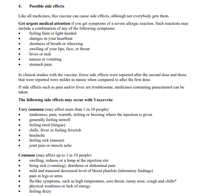 To illustrate this, I’ve had a poke around the evolving versions of the Patient Information Leaflets for the Covid vaccines since rollout started. It’s terrifying. I’ll show you them in a moment, but what it’s been doing as Yellow Card reports rapidly accumulated is to:
