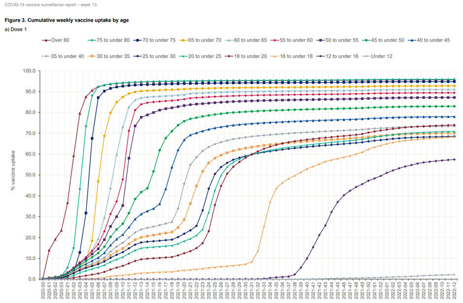 The same report also shows us that of the most vaccinated age-cohort, the over-80s, while about 93% were vaccinated, 7% weren’t.