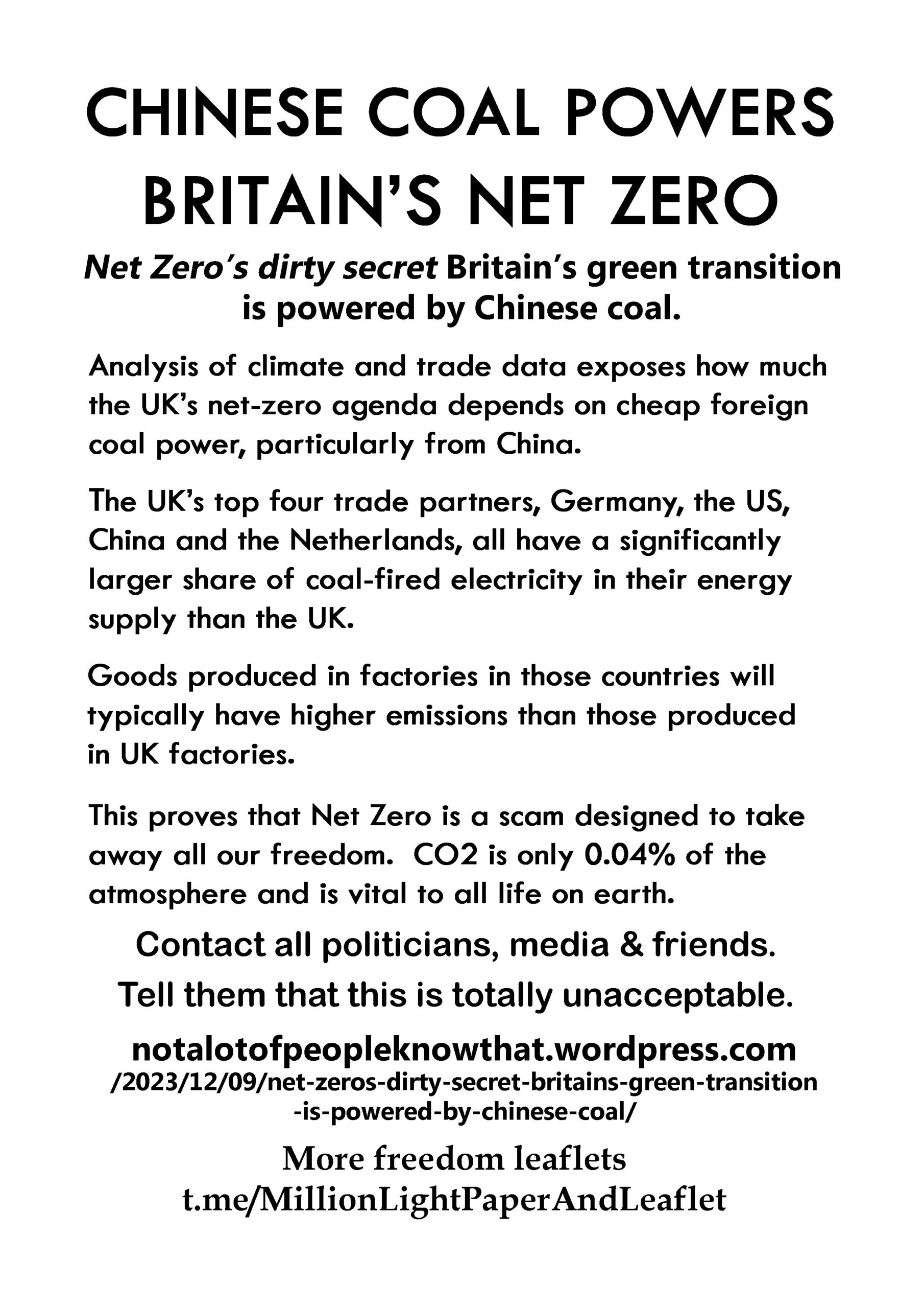 Chinese Coal Powers Britain’s Net Zero – latest leaflet to print at home and deliver to neighbours or forward to politicians, media, friends online.
