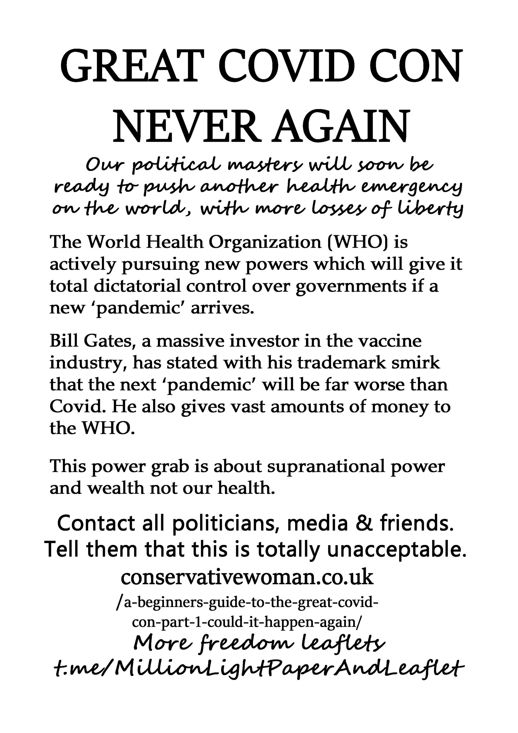 latest leaflet to print at home and deliver to neighbours or forward to politicians, media, friends online.