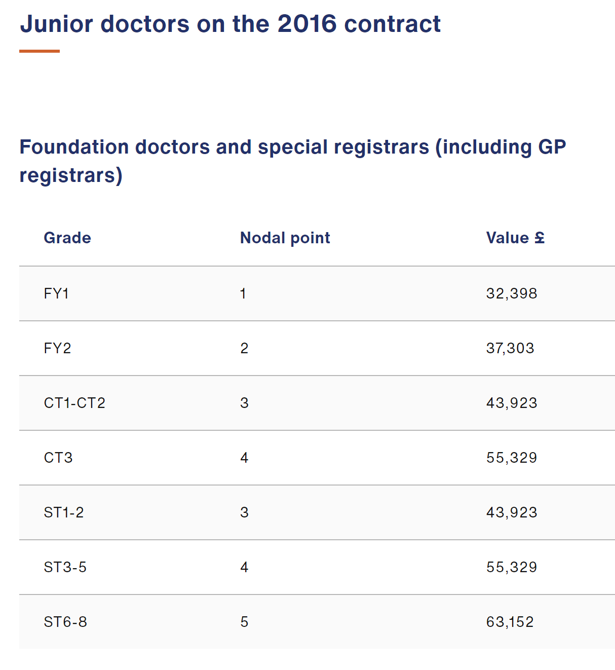 Just for balance this is from the BMA web site and shows the salary progression in the early years of a doctor’s career, to shows what £15ph translates into.