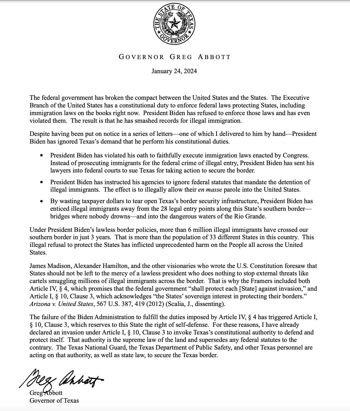 Governor Abbott’s statement. 6 million immigrants in 3 years – and we think we’ve got it bad…..