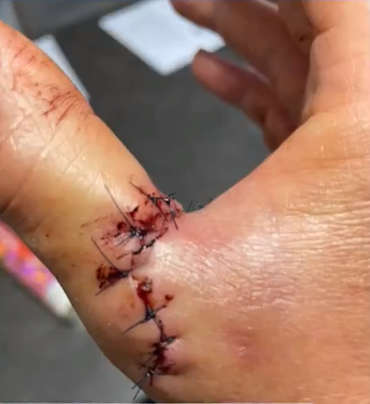 The 66-year-old, who has been identified only as “Claude”, remains in critical condition as of this writing, and two other people were, per the delicate expression used by France’s AFP wire service and adopted by the Daily Mail here, “slightly wounded”. Here are some pictures of the “slight” wounds to the neck and the hands suffered by one of them. The victim, who has been identified only as “Christophe”, was one of several travellers who intervened to immobilise the assailant.