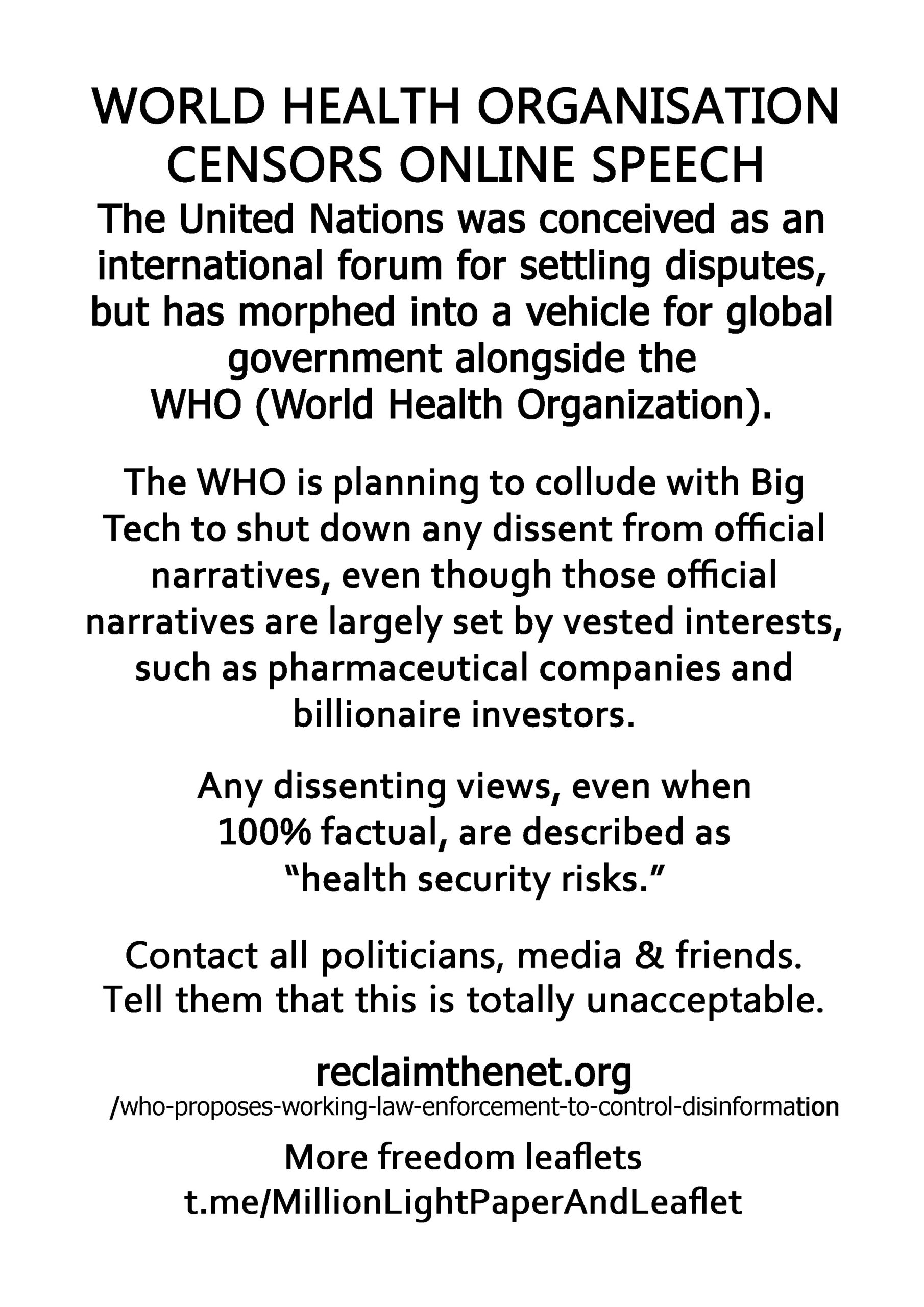 World Health Organisation Censors Online Speech