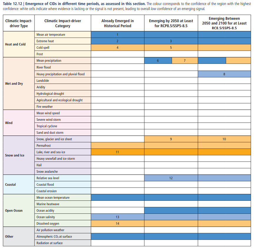 Beyond natural variability, the IPCC, much to the disappointment of alarmists, has concluded there is little or no evidence that the following events (table above) are or will be affected by human-caused climate change: river floods, heavy rain and pluvial floods, landslides, drought (all types), fire ‘weather’, severe wind storms (Met Office please note), tropical cyclones, sand and dust storms, heavy snowfall and ice storms, hail, snow avalanche, coastal flooding and erosion, and marine heatwaves.