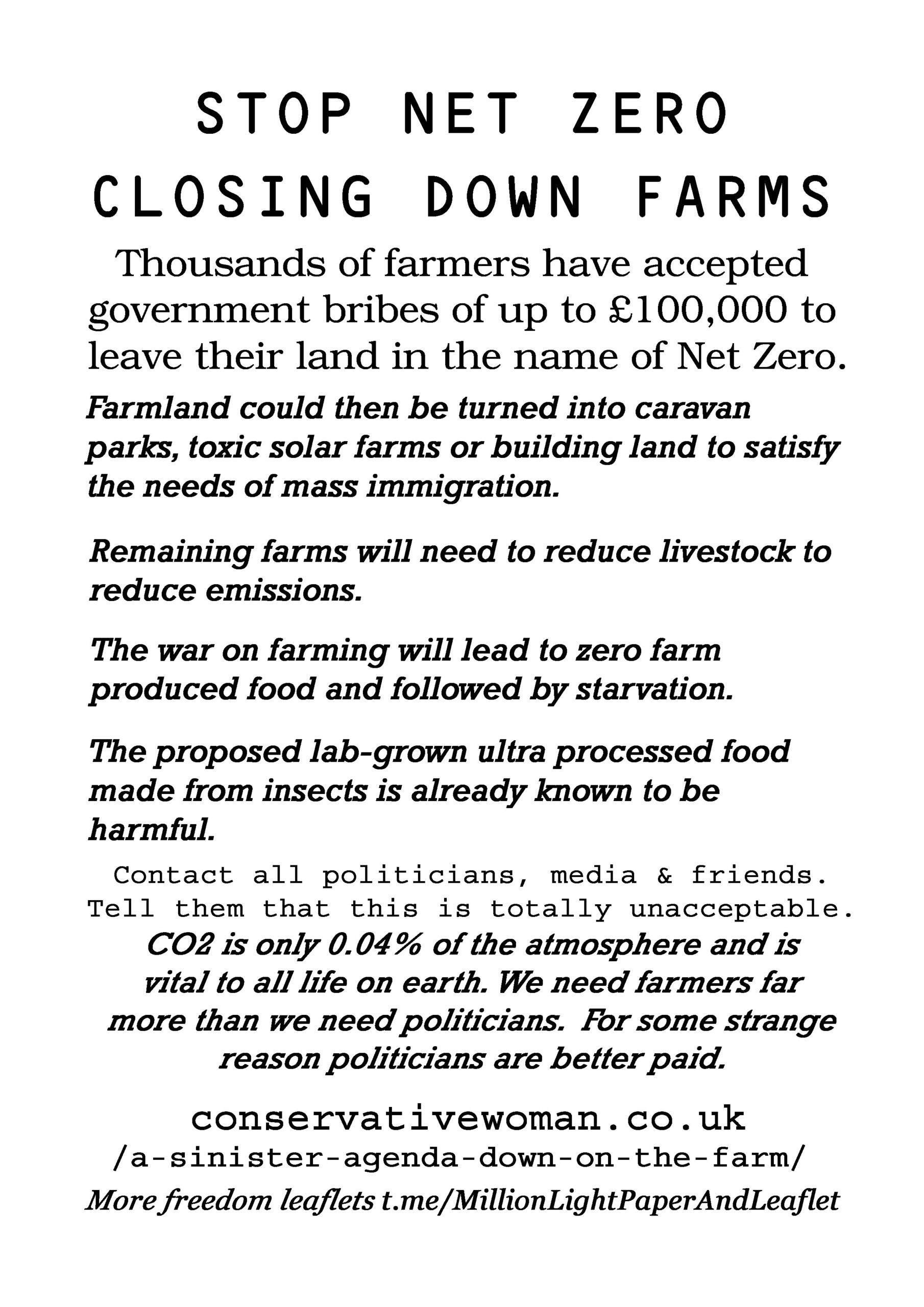 Stop Net Zero Closing Down Farms – latest leaflet to print at home and deliver to neighbours or forward to politicians, media, friends online.