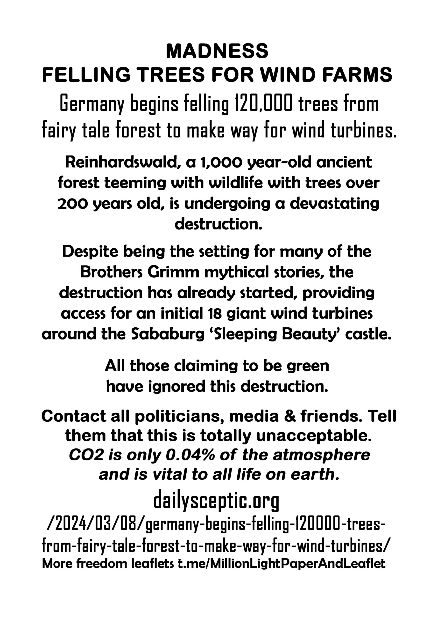 Madness Felling Trees For Wind Farms – latest leaflet to print at home and deliver to neighbours or forward to politicians, media, friends online.