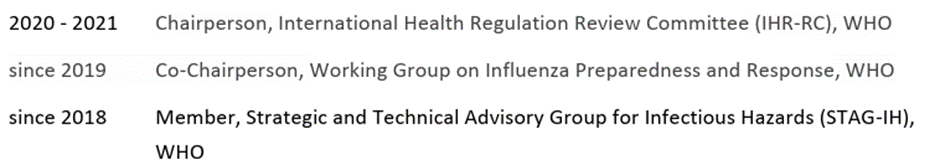 As Schreyer knows (because he has touched upon it here), in the period in question no other public health official in the world had better connections to the WHO, namely because Wieler was in fact himself a key player at the WHO. As documented in the below excerpt from his current CV on the website of the German National Academy of Sciences (Leopoldina), Wieler was serving as a member of no less than three WHO committees and as the Chair or Co-Chair of two of them.