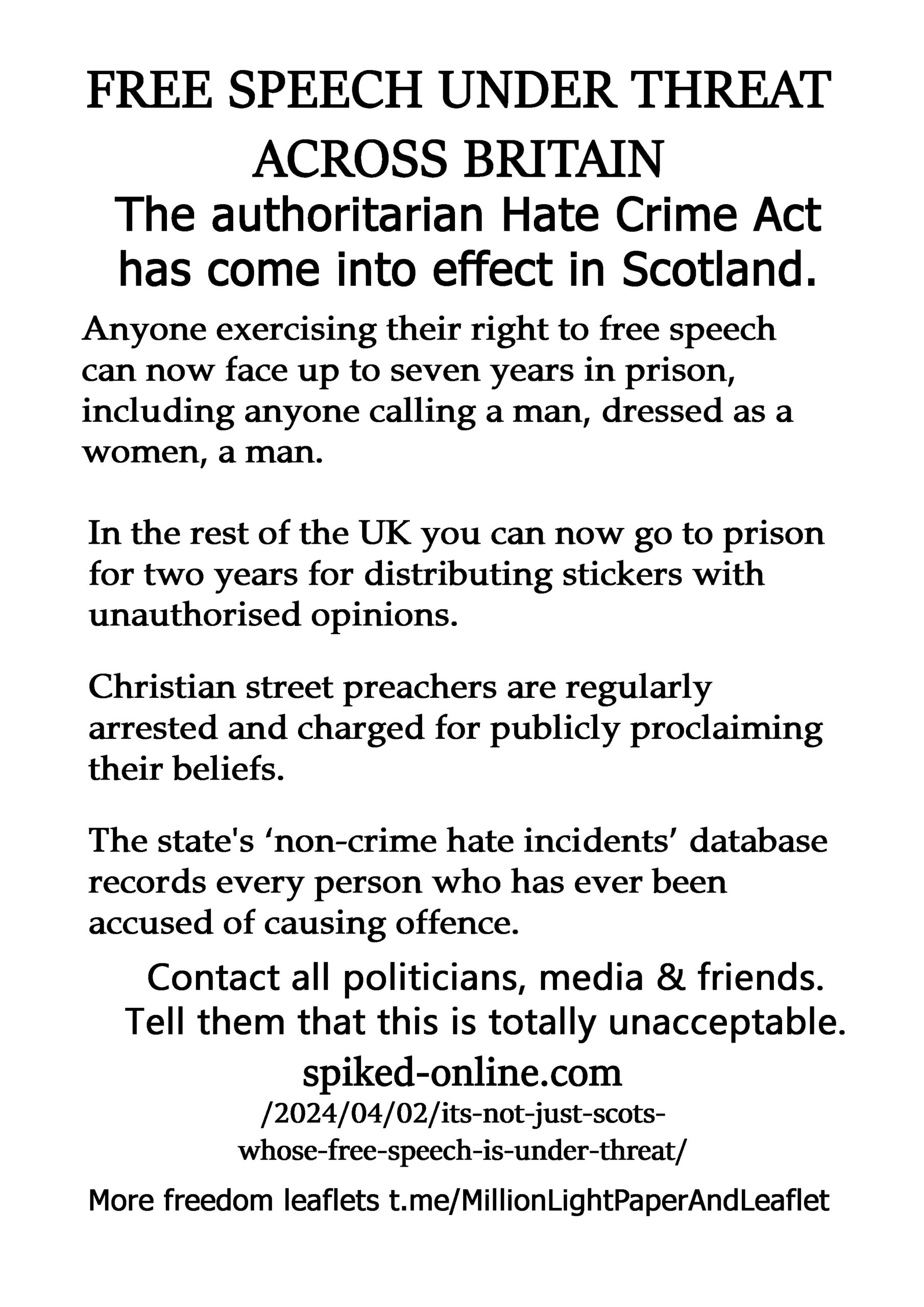 Free Speech Under Threat Across Britain – latest leaflet to print at home and deliver to neighbours or forward to politicians, including your local Reform Party candidate, your local vicar, media and friends online.