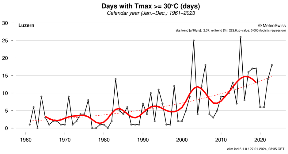 It is true, according to MeteoSwiss, that urban areas do see more heatwaves than in the past. The small city of Lucerne, for instance, now experiences between 10 and 15 days a year in which temperatures exceed 30 degrees centigrade – a significant increase, when compared to the 1980s and 90s.