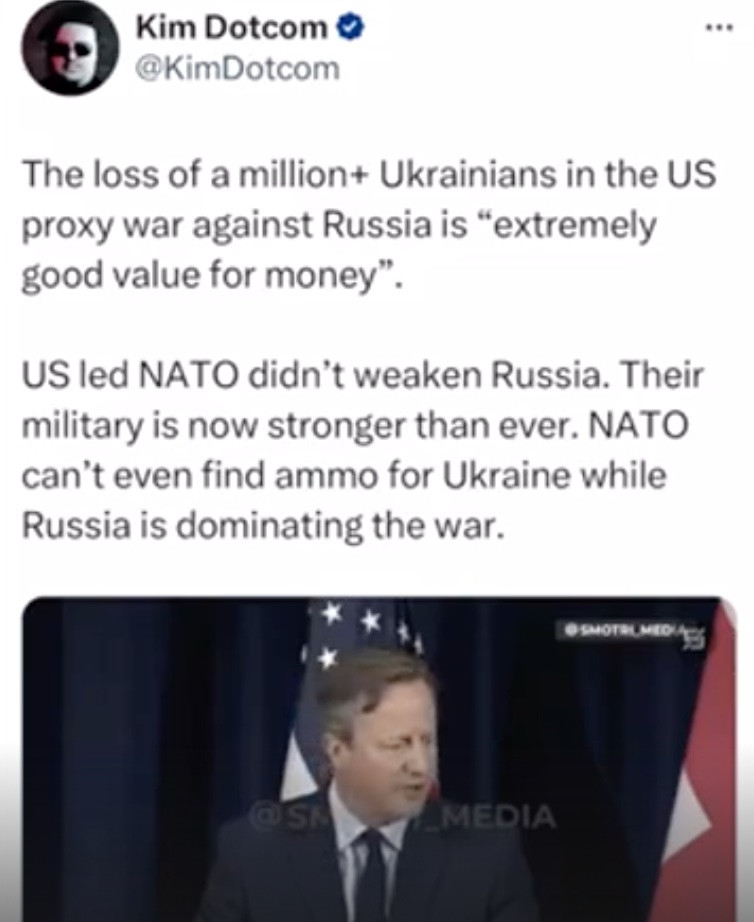 Not sure Putin trusts Trump: in the Tucker Carlson interview he implied, in a very roundabout way, that he preferred known enemies (ie Biden and his Deep State) to unknowns, probably because he knows that the Deep State will do all it can to stymie anything Trump might want to do that could derail their plans. (Not taking troops out of Syria springs to mind.) I suppose we could take heart that Cameron got a big flea in his ear on his recent visit to the US where he said that the thousands of Ukie corpses are ‘good business’ for the West which might indicate a potential direction of future travel, but who knows.