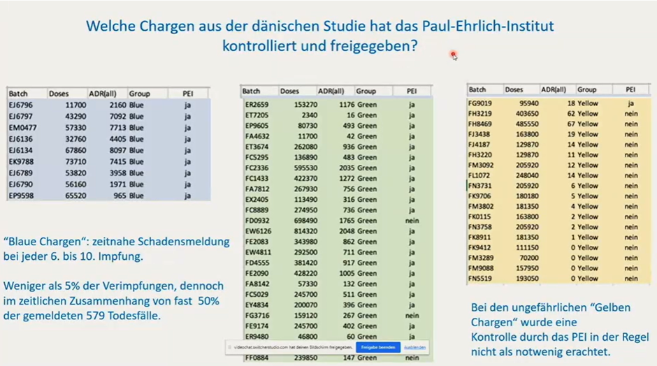 Regarding the ‘yellow’ batches, as discussed here, this is in fact what Prof. Dyker was hinting at when he first noted that the batch release authority, Germany’s PEI, had not subjected them to quality control testing and said that they could be “something like placebos“.