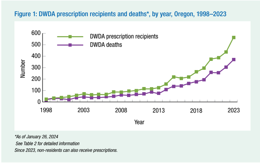 It’s in the area of ‘efficacy’ that the Oregon report is so illuminating. Let’s start with a bit of context. In Oregon they aren’t killing people on the industrial scale of Canada but they still manage to kill more than 20 times the number executed across the entirety of the USA.