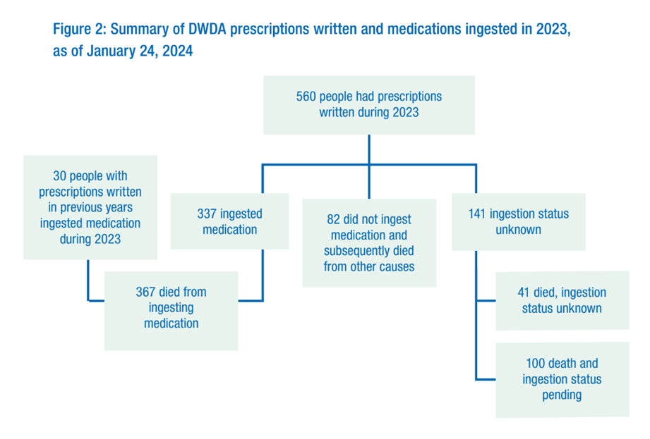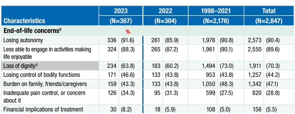 Figure 9 has data on the ‘why’. Why did these 367 people want to die? Only 34% mentioned inadequate pain control. For most it was losing autonomy, being a burden on their family, or just not being able to enjoy life.