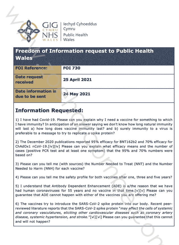 I mentally carried out a process for myself, which was very similar to the one Dr Harcombe did by challenging the Welsh Authorities. I reached the same conclusion, resisted the coercion, and have remained un-jabbed.