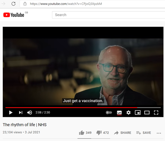 Remember the NHS “Rhythm of Life” promotion for vaccination which ended with Jim Broadbent saying “Just get a vaccination” with a tone of contempt?