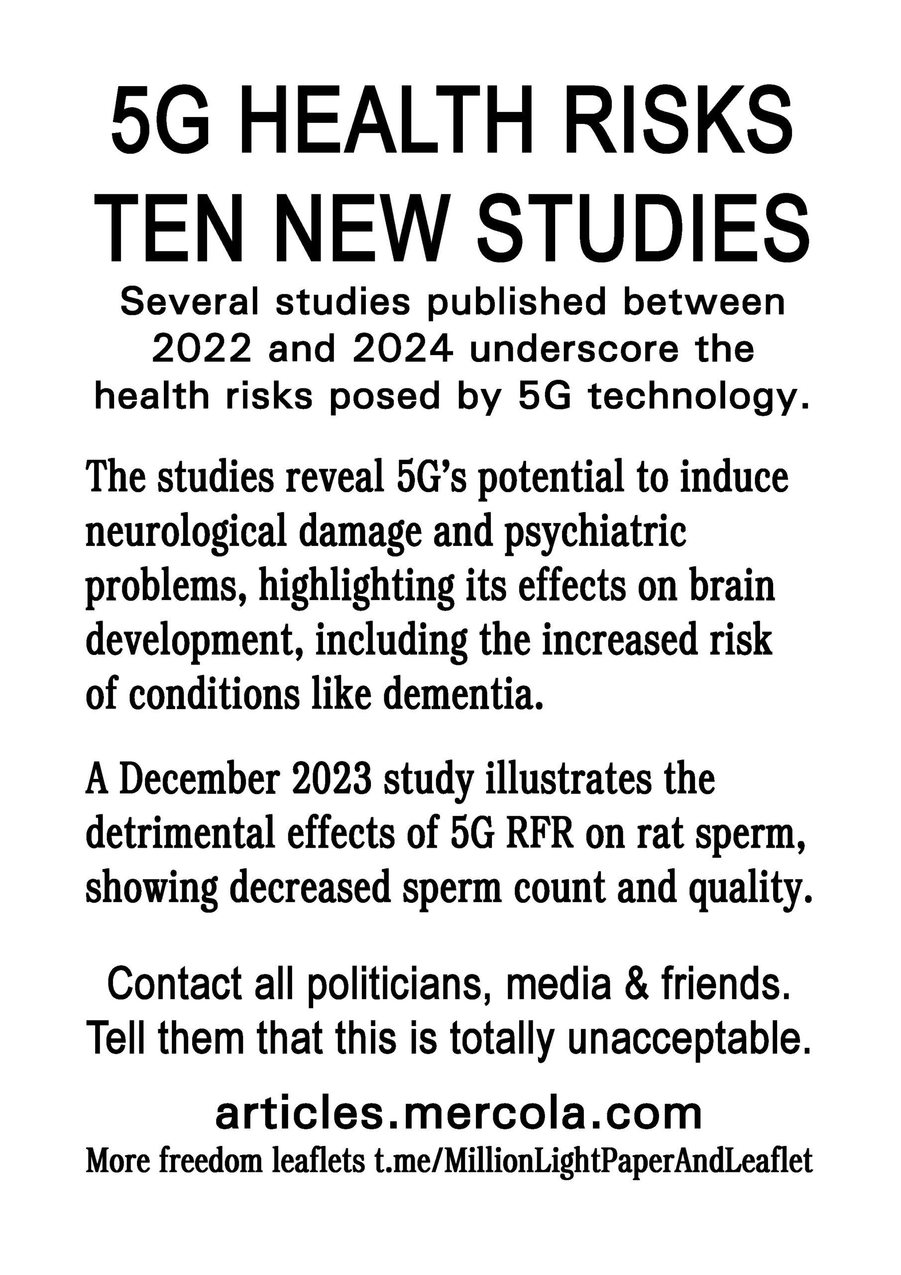 5G Health Risks Ten New Studies – latest leaflet to print at home and deliver to neighbours or forward to politicians, including your local Reform Party candidate, your local vicar, media and friends online.